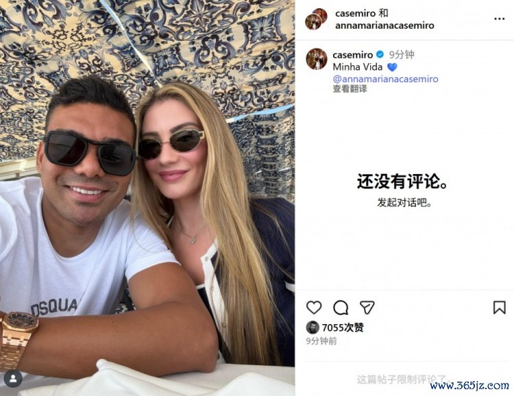 9月22日讯 曼联球员卡塞米罗在社媒晒出一张与妻子安娜-玛丽亚娜的甜蜜合照,配文写道:“我的生活💙”