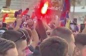 火药味!巴萨球迷在运动活动 场 外聚集,高喊辱骂巴黎的口号