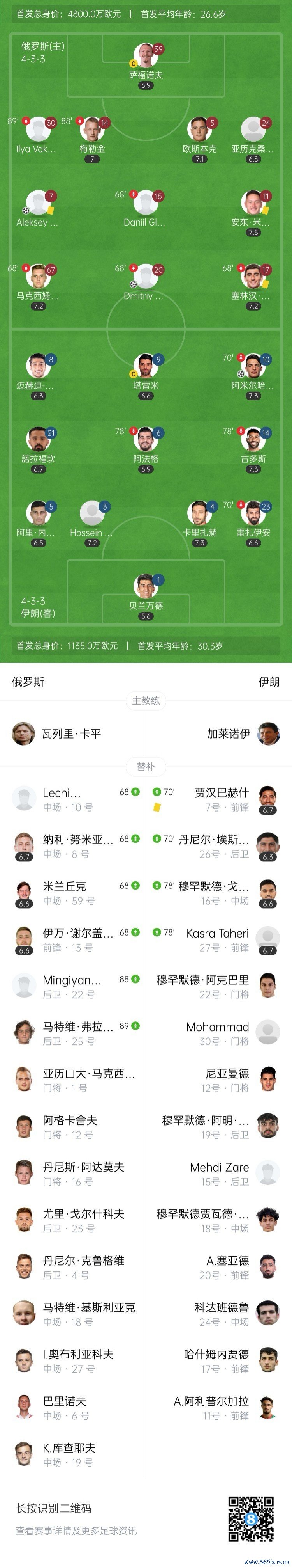 友情 赛俄罗斯2-1击败伊朗,沃罗比约夫、巴特拉科夫破门