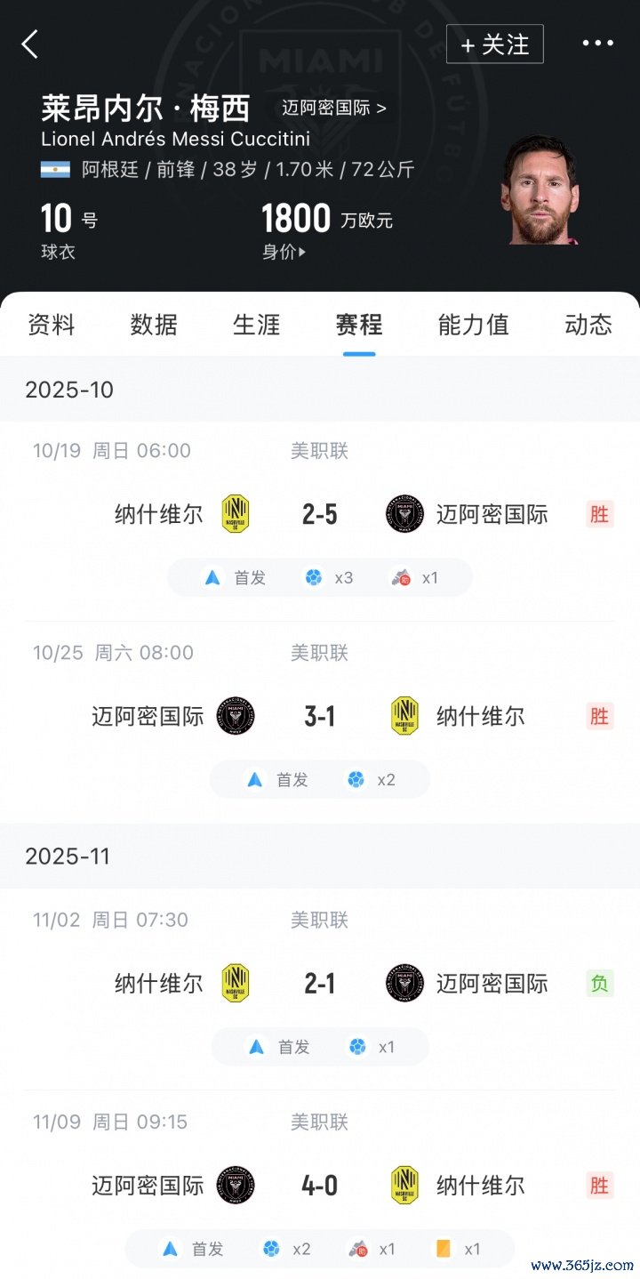 算上常规赛最后一场,探索体育视界NBA直播迈阿密国际连续4场面对纳什维尔, 最美运动人生战绩为3胜1负。