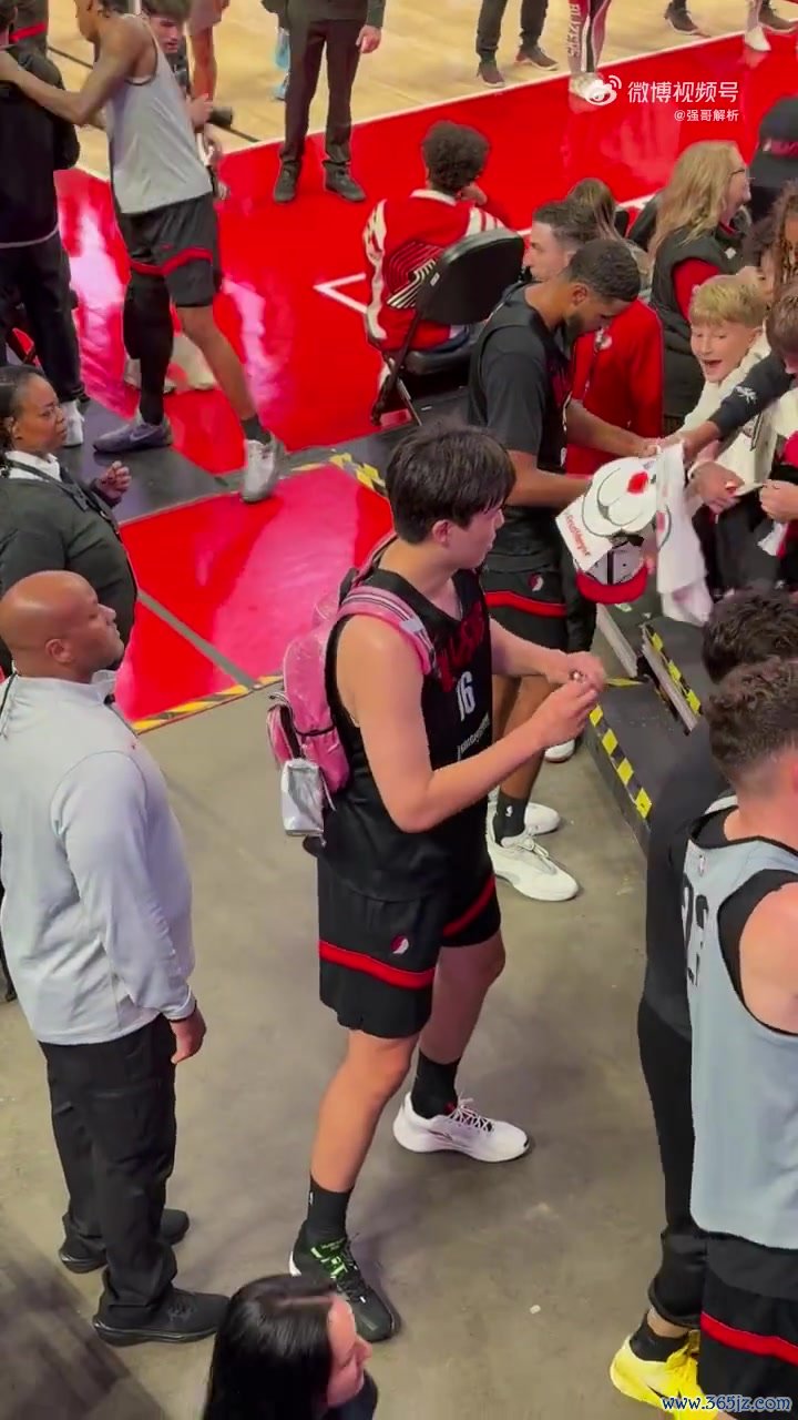 这手速得练练了😂杨瀚森背着尬舞时的粉色包包 给场边球迷签名