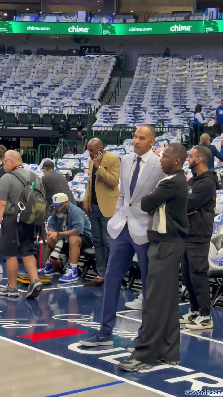 独行侠总经理尼克-哈里森和著名经纪人富保罗场边畅聊