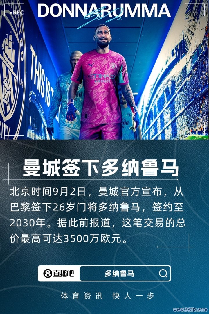 顶级强援!官方:曼城签下26岁守门员多纳鲁马,总价最高3500万欧