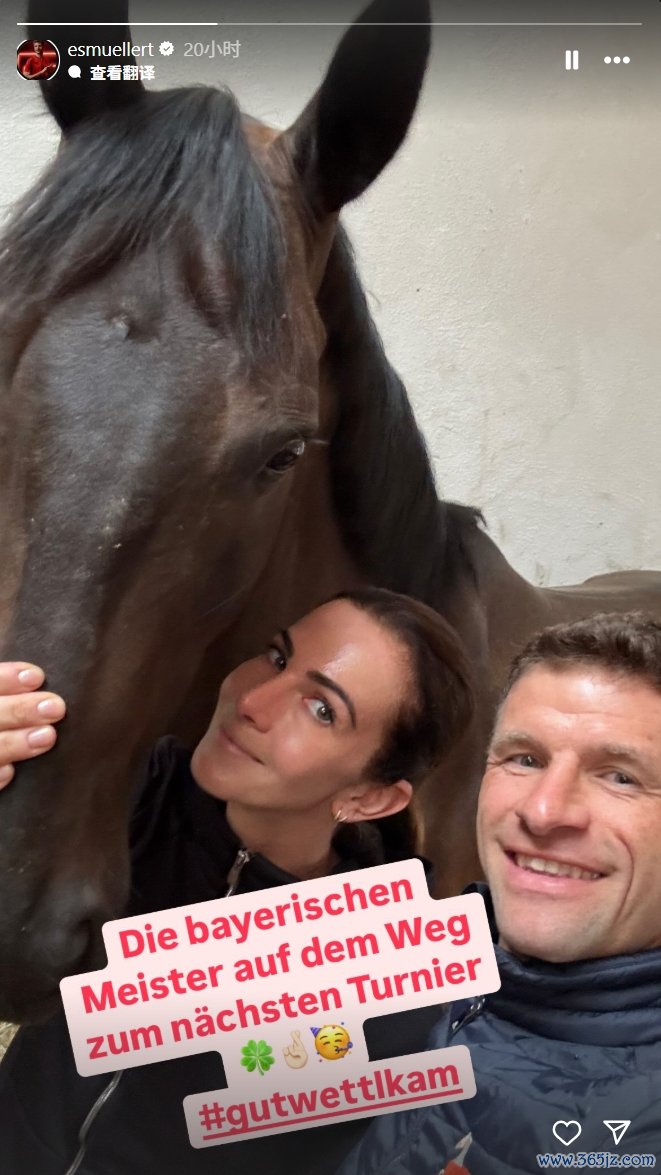 破婚变传闻?穆勒晒与妻子和马匹合照:巴伐利亚第一名 准备下场赛事