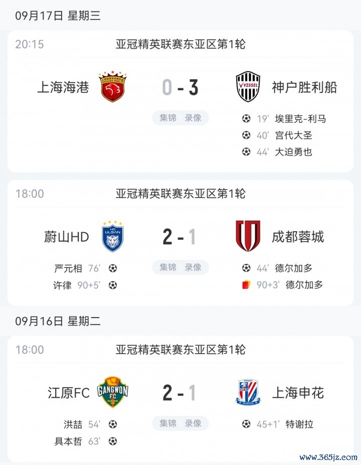 首轮赛事 , 羽毛球资讯蓉城、海港、申花出战亚冠精英职业联赛 全败。