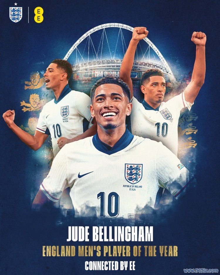 10月1日讯 英格兰代表队宣布,贝林厄姆荣获2024/25赛季英格兰队最佳男球员。