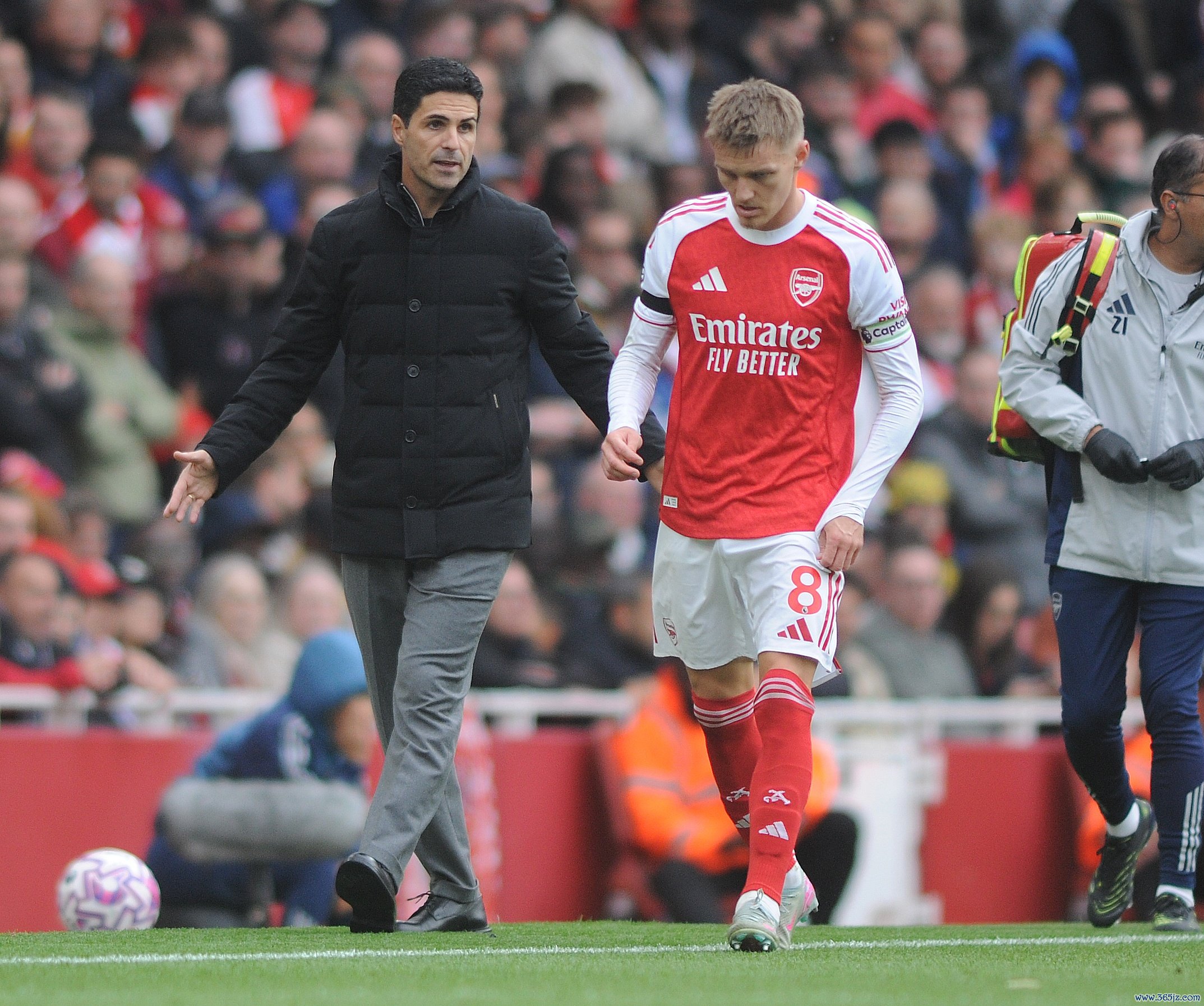 10月6日讯 英超第7轮赛事 ,阿森纳2-0击败西汉姆,但刚刚从肩伤中复出的厄德高因膝伤离场,而赖斯因背伤离场。